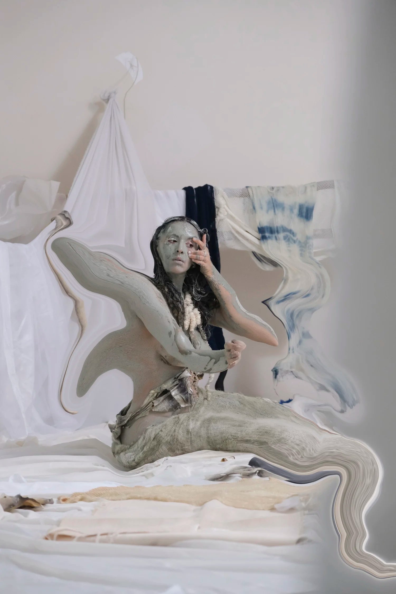 Her work explores cycles of life, death, and rebirth, drawing on the fluidity of water as both medium and metaphor.