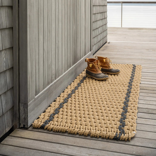 Woven Rope Door Mat | Wheat with Charcoal Stripes