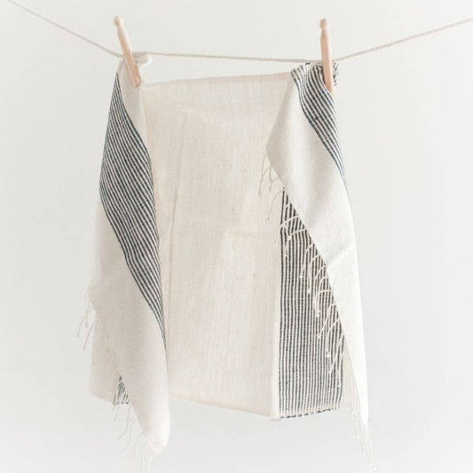 Riviera Striped Cotton Hand Towel | Natural with Grey