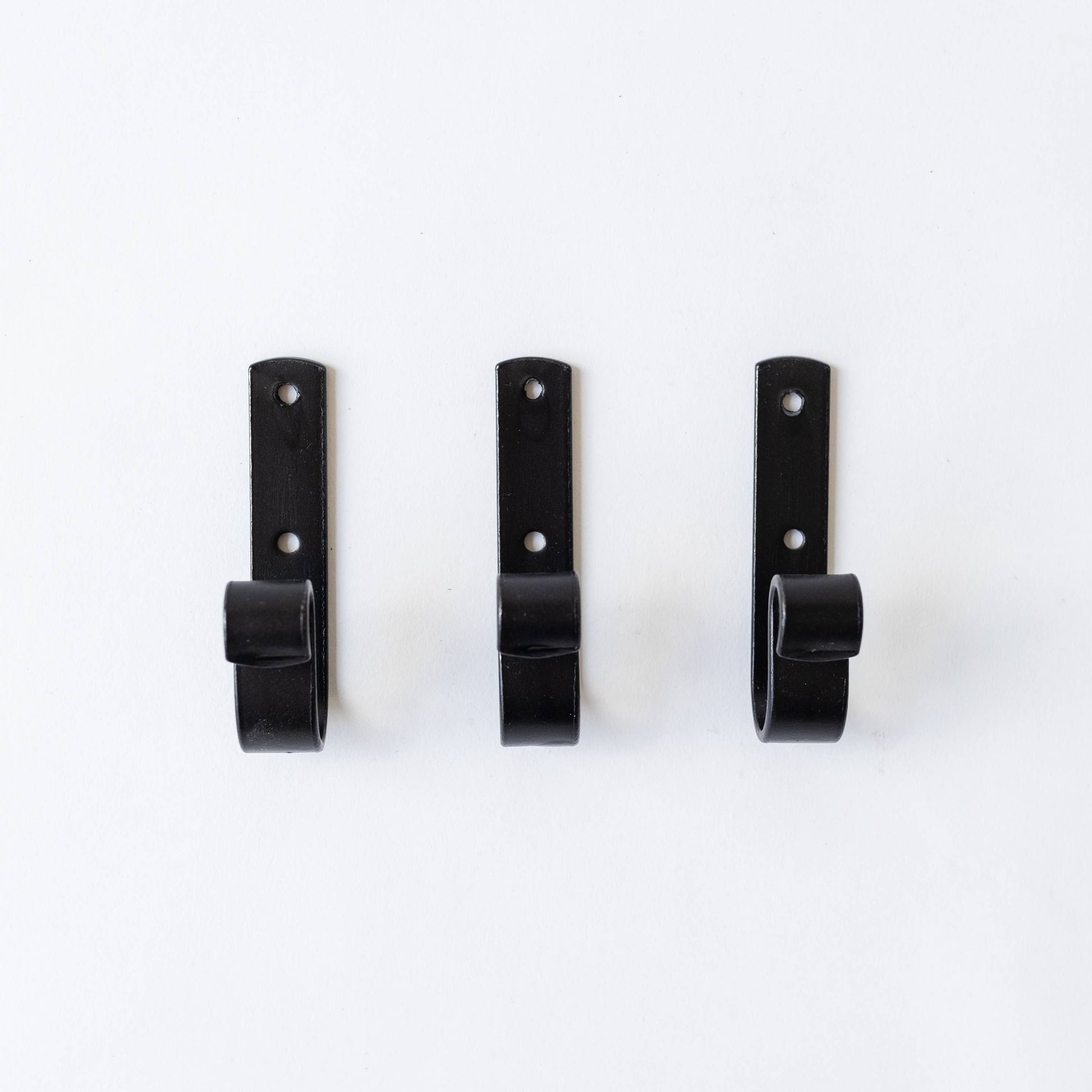 Sturdy and durable, made of handmade wrought iron these hooks are perfect for any room in your home. Excellent for coats, bags, wreaths, or hanging storage of any kind. Metal construction, powder coated matte finish.