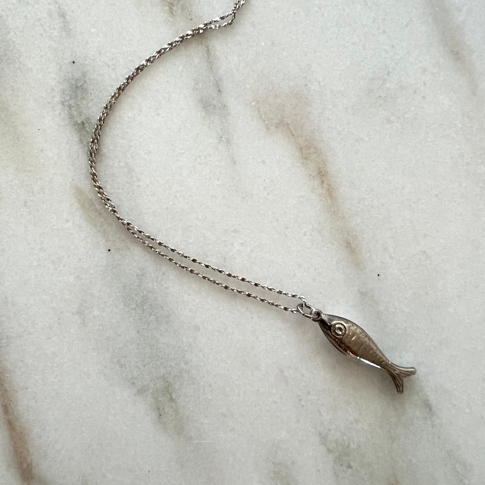 The cutest little puffy sardine necklace, perfect for wearing on it's own or layered with other necklaces.
